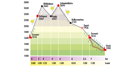 Streckenprofil mit Gehzeiten und Wegcharakter.